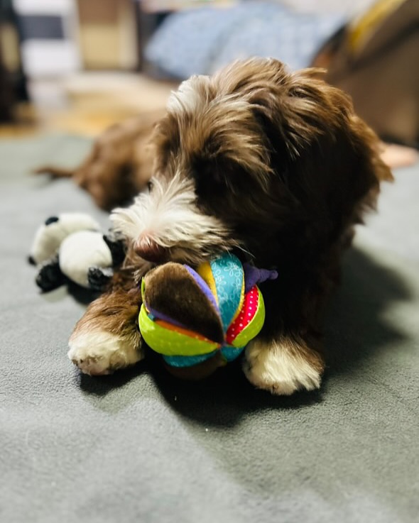 来日後、車の中では静かに様子を見ていたLoveちゃんですが、ご自宅に着いてからは元気いっぱいに遊んでいるそう🐶✨