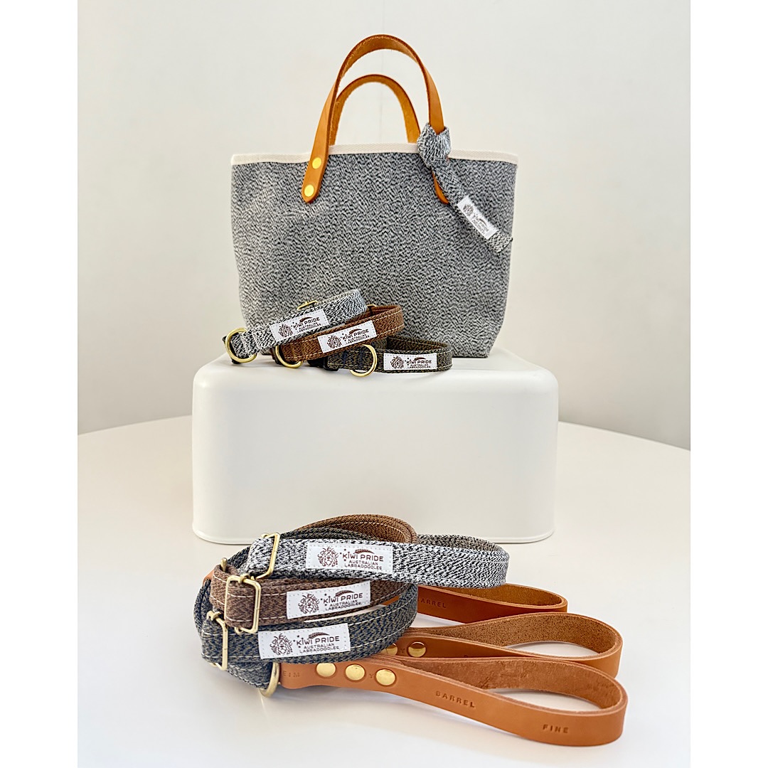 この首輪、リード、バッグは、日本の倉敷帆布とニュージーランドの魅力を融合させた一品です。