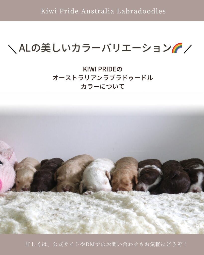 🐾 子犬を家族として迎える前に、「この子の色ってなんていうの?」と思ったら、ぜひKiwi PrideやWALAのカラーガイドをご覧ください。 私たちがどのようにALたちの個性と美しさを表現しているかが、伝わりますと嬉しいです😊
